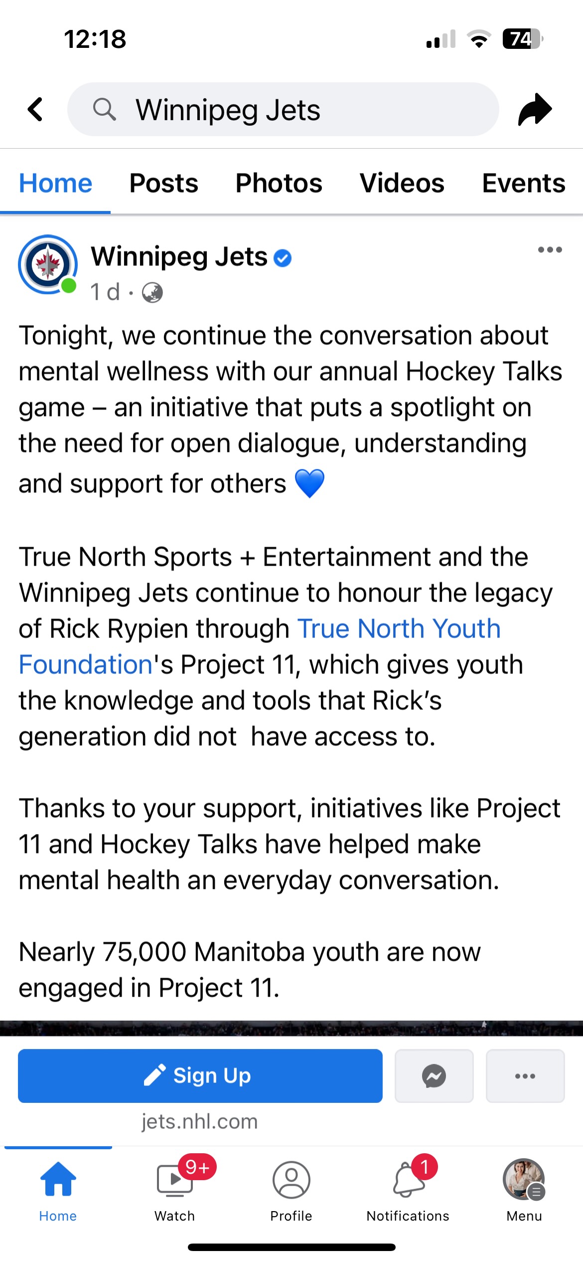 Yesterday, our team, the Winnipeg Jets played the Arizona Coyotes in the annual Hockey Talks game. This game strives to deepen the conversation around mental wellness, through the amazing work of True North Youth Foundation’s Project 11.
