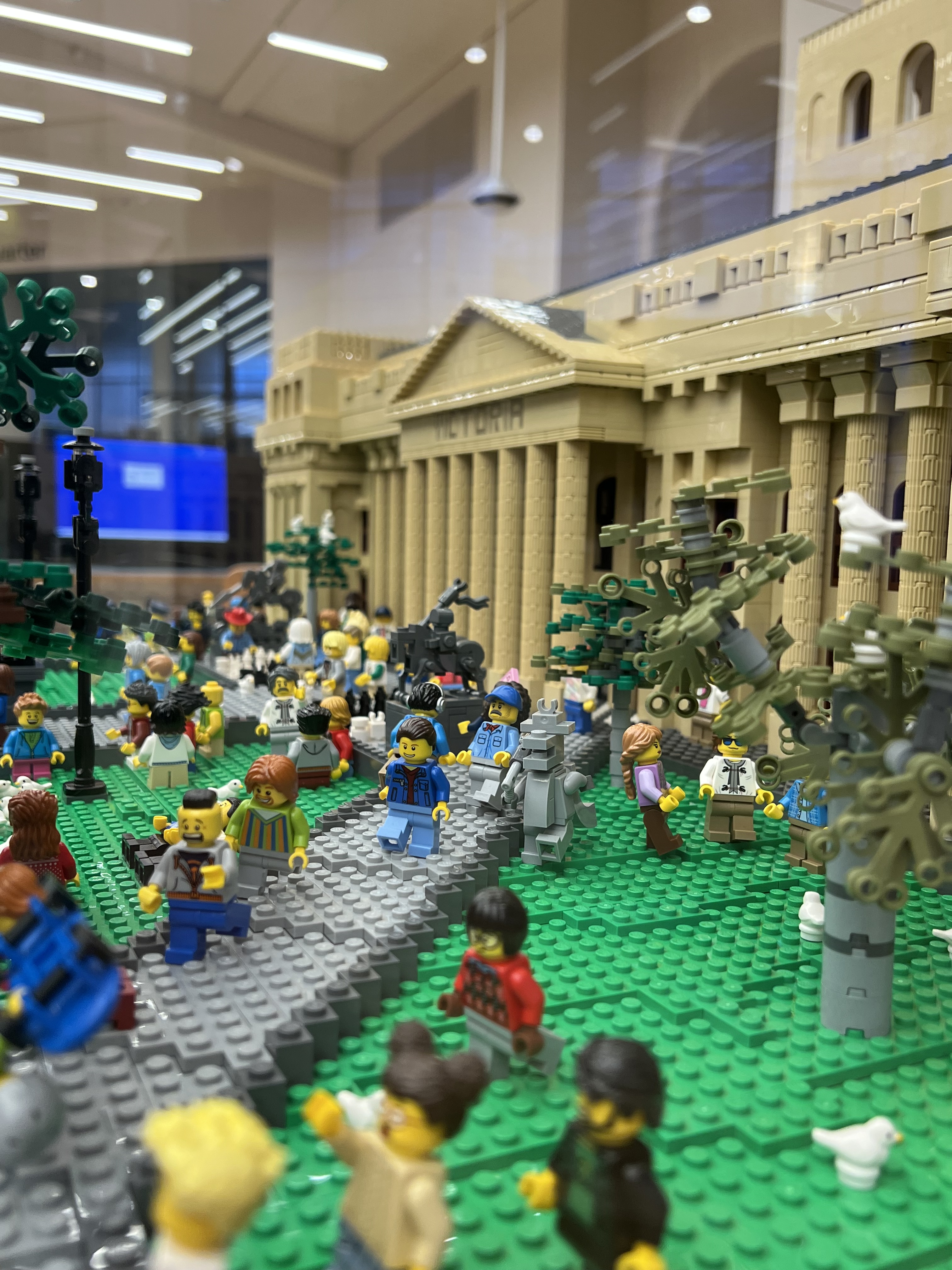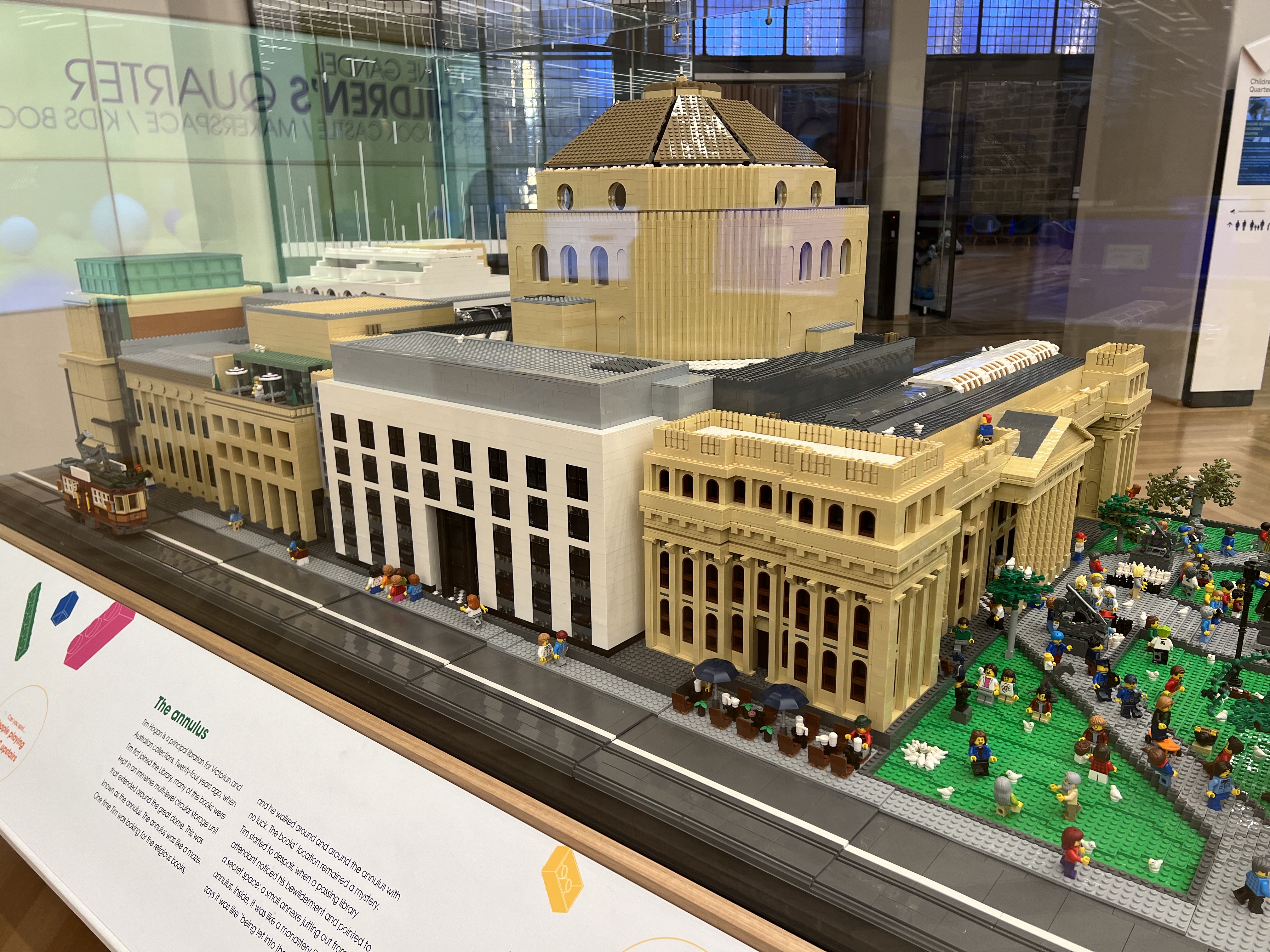 This week I am able to spend a free day in the city for the first time in months. A day of writing at the library. My happy place. My inspiration and possibly even my muse. As I set up in my usual spot in The Quad, I glance over and see a sight to behold. An enormous Lego version of the State Library of Bricktoria (State Library of Victoria). It is magnificently impressive. I decide to wait until there is no one else admiring this construction, as I want an unimpeded view. This Lego is garnering a substantial amount of attention.