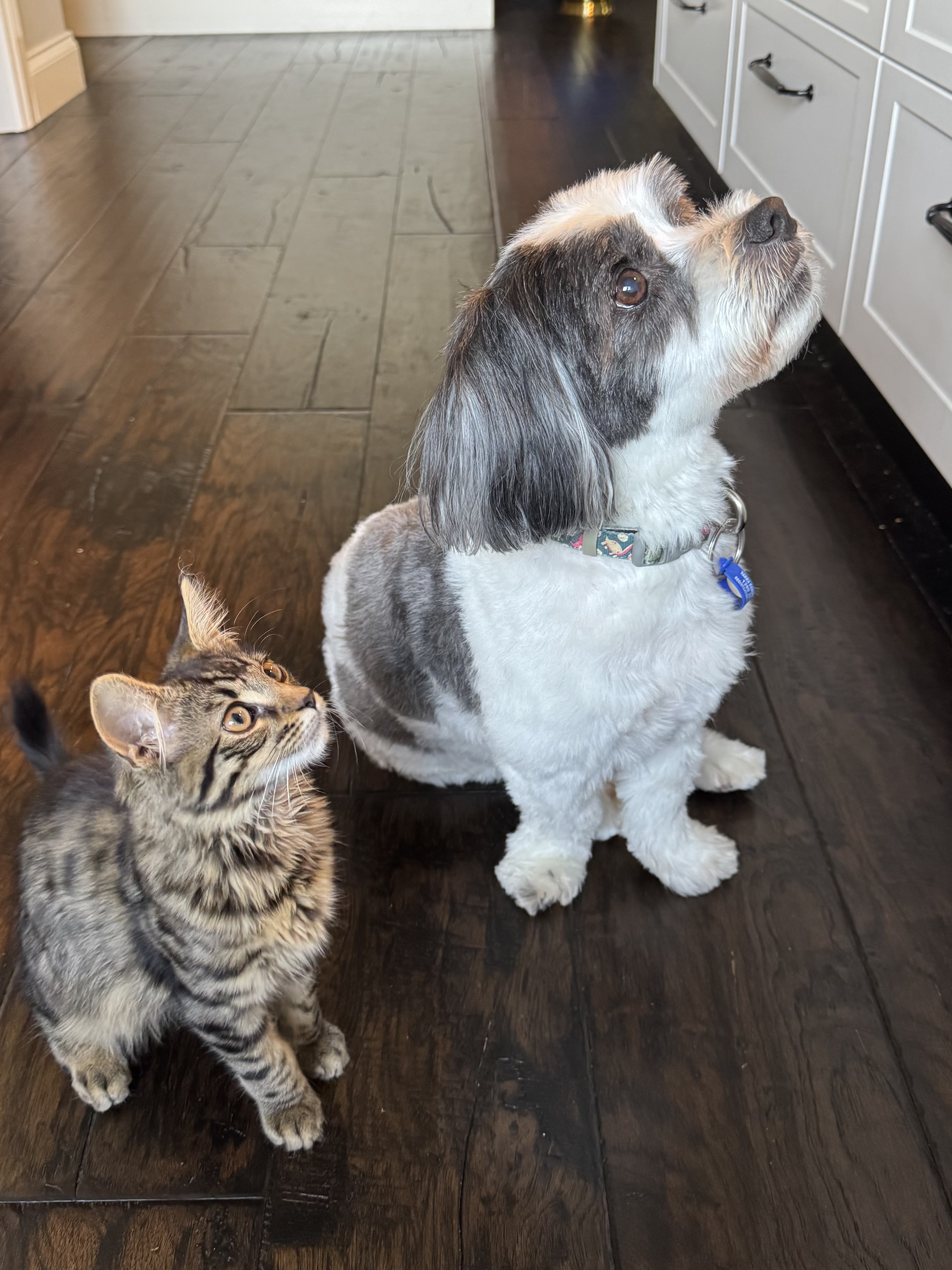 So, I’m trying to get back into my writing groove, and it’s slowly coming. My biggest obstacle at the moment is definitely our new kitten, Genji. We rescued Genji mid December, and he is a soft, fluffy little ball of naughtiness and adventure. I’m completely besotted with him. So are the kids, Stu, and even Loki-san, my beloved Moodle, who is the best big fur brother ever! They wrestle, chase each other around, and insist on eating the same thing, at the same time. Sometimes cat food, sometimes dog food. They are super cute together. It seems their favourite thing to do during the day is to lay, snuggled up together, near or under my desk as I write. So, although he is a distraction, he will probably also be good influence on me getting my butt into the chair.