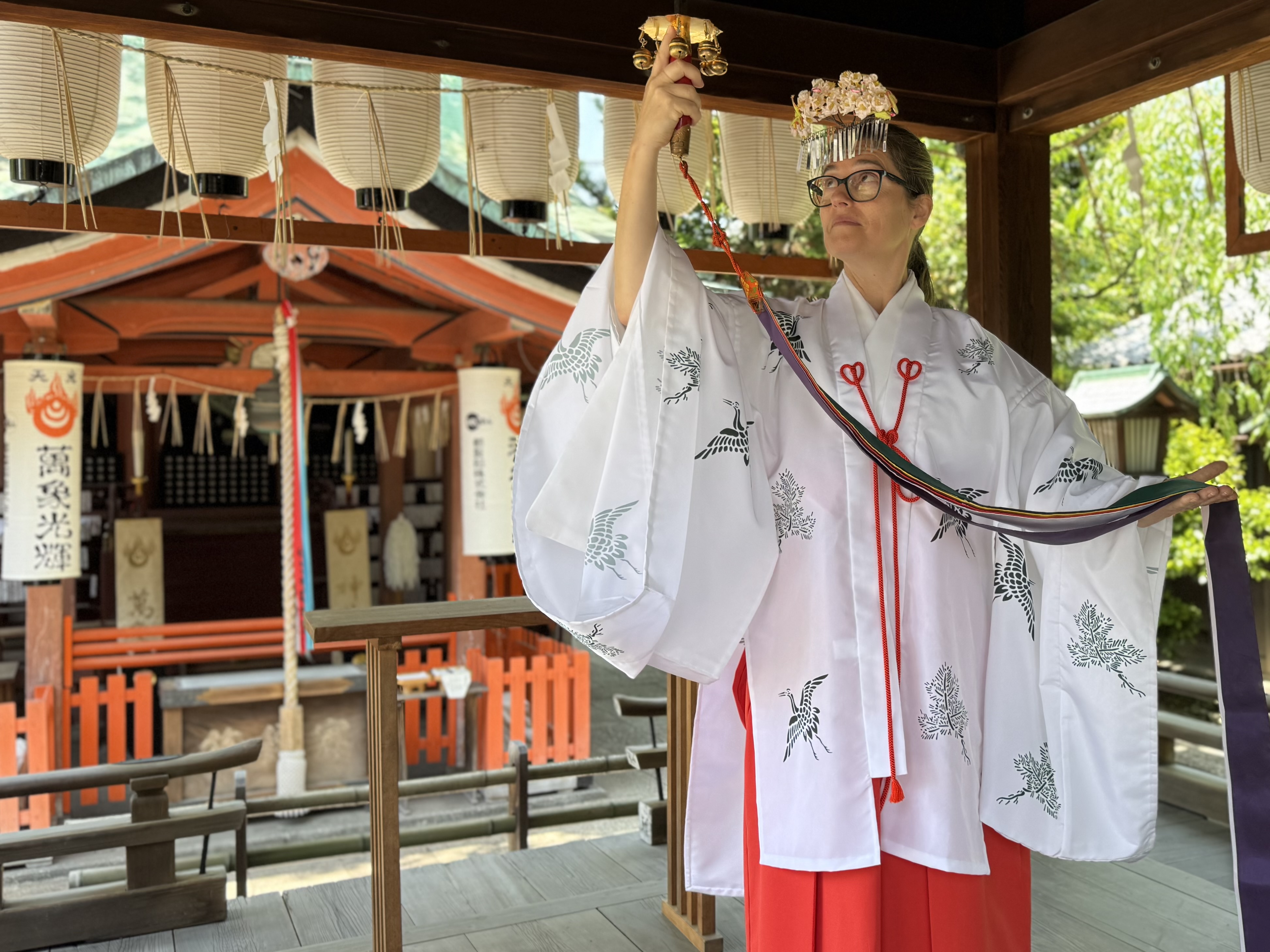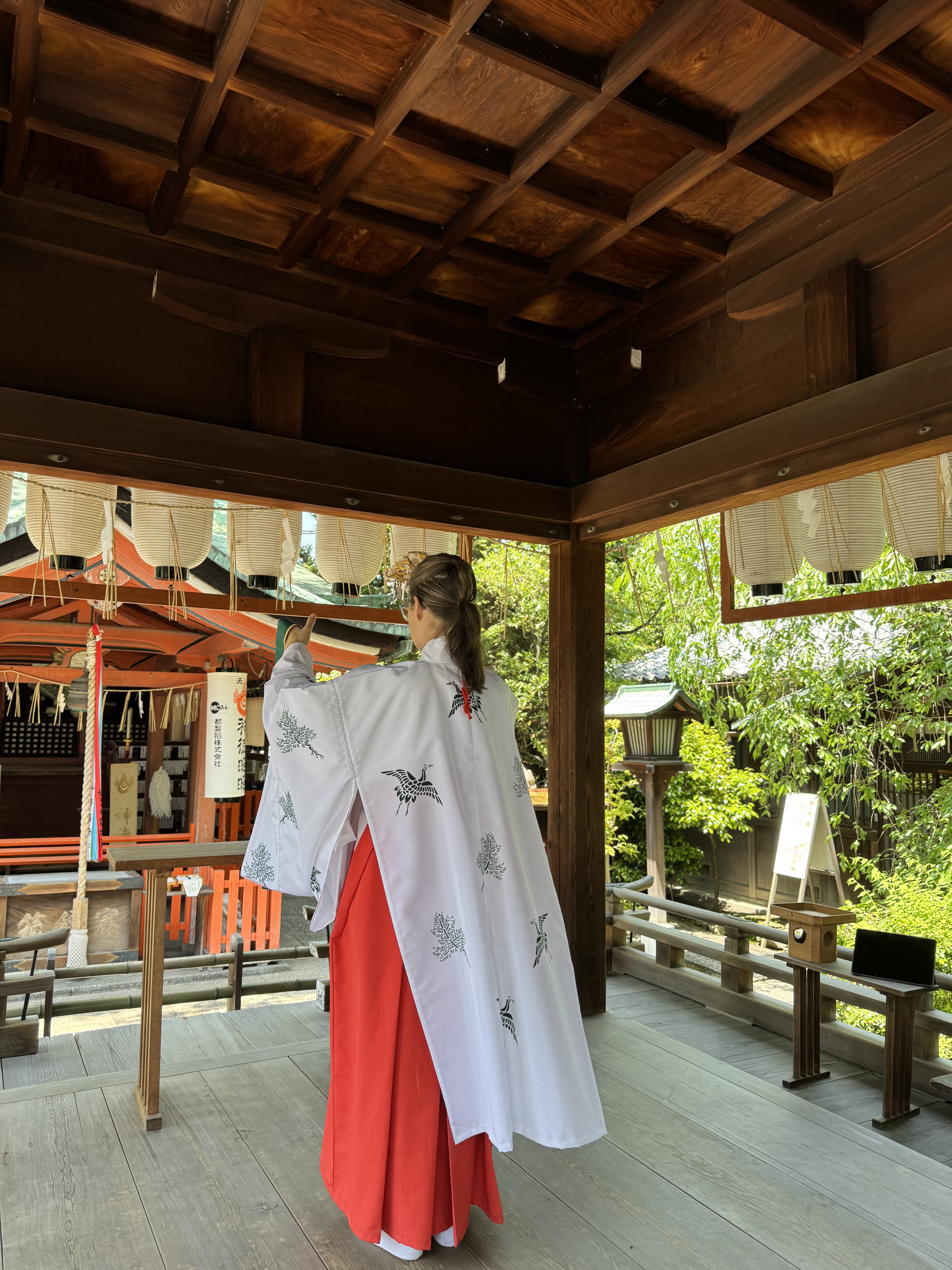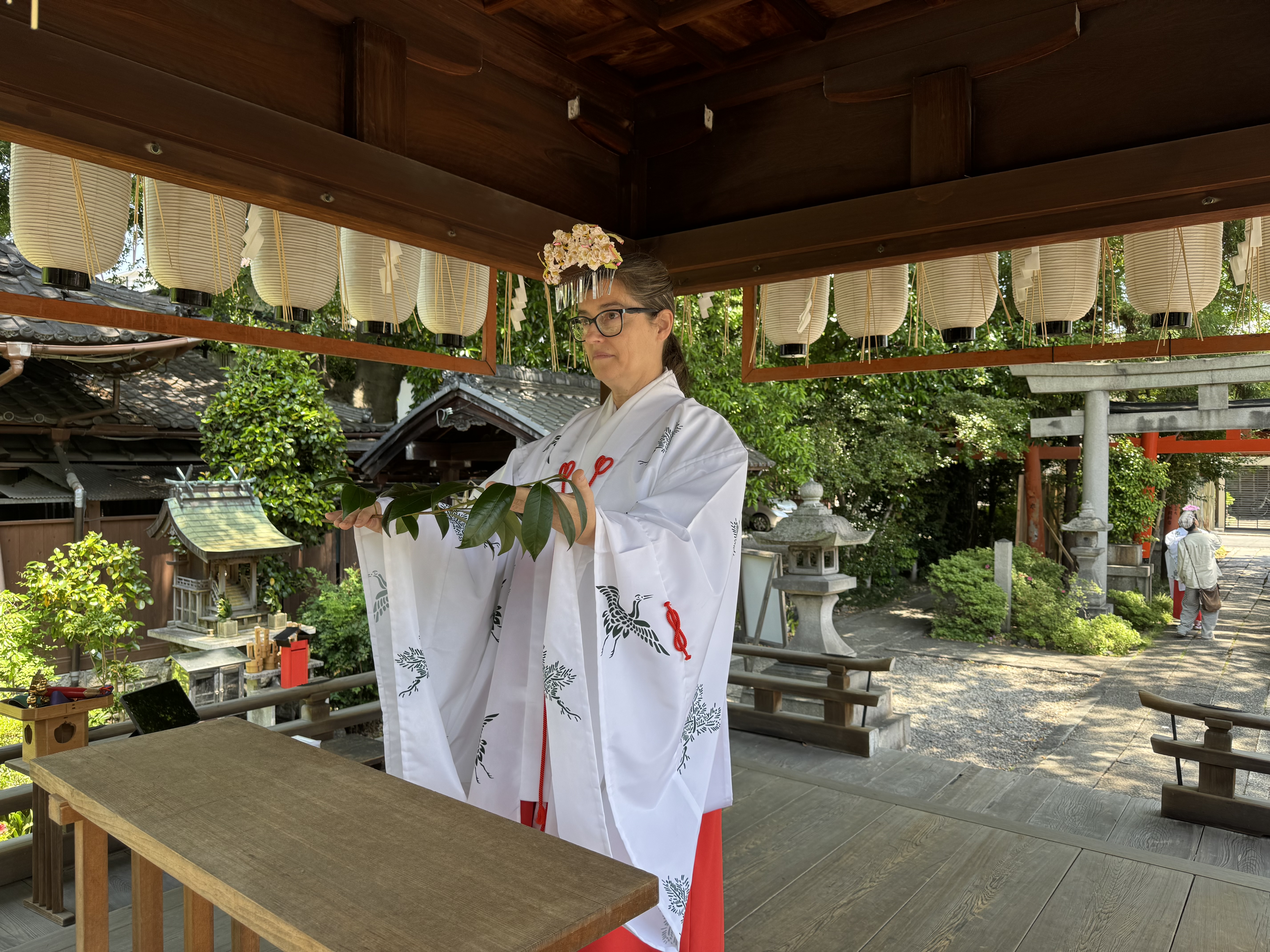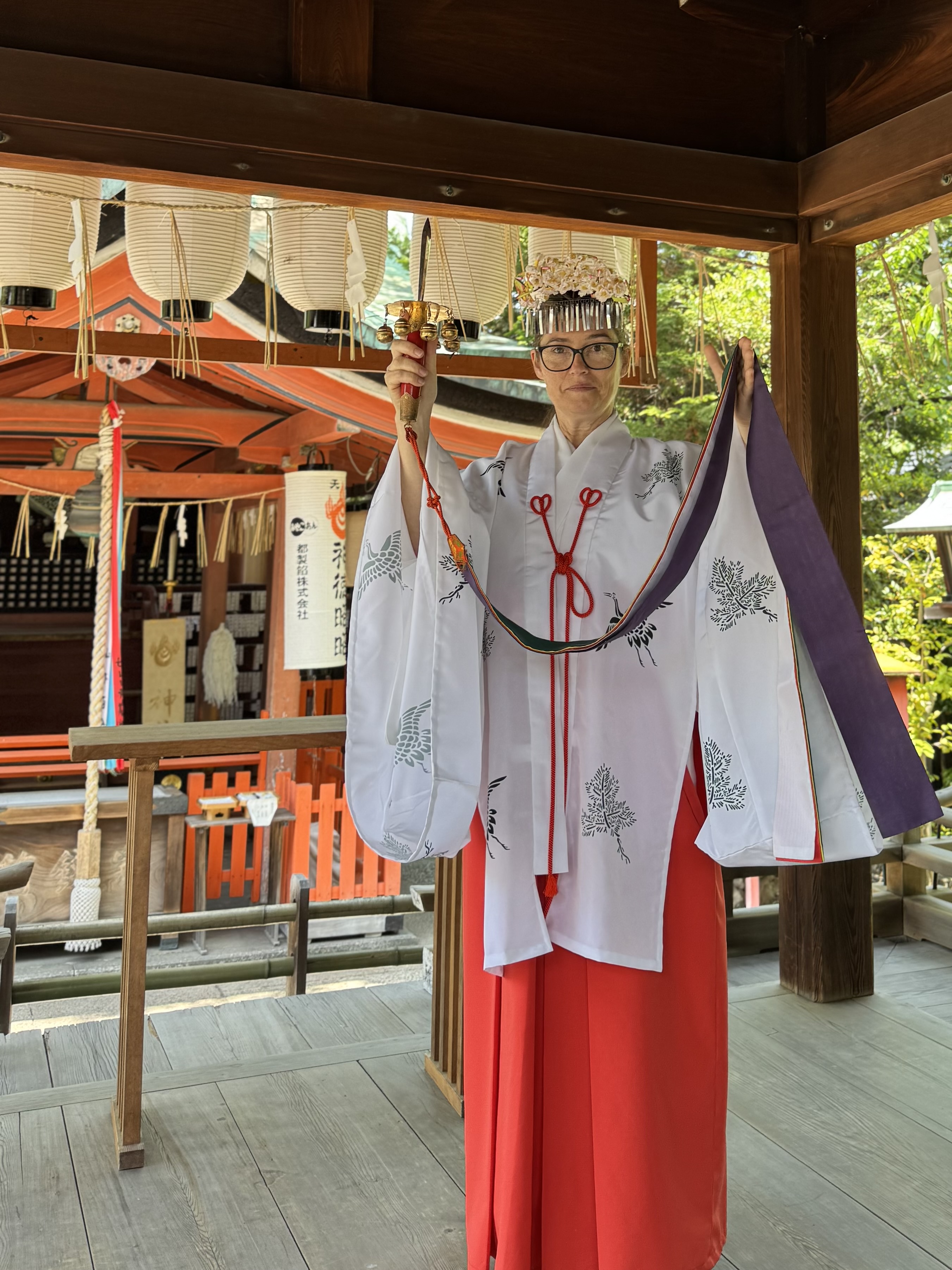 In May, I went back to Kyoto, my favourite home away from home. I had several reasons for doing so, but my shrine maiden experience was the transformative ‘epiphany’ moment of the trip as far as my writing is concerned.