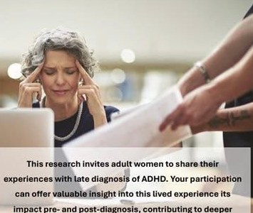 If you are female, have been diagnosed with ADHD in the last five years, are between 35-65 years of age, and live in Australia, consider joining the study. It’s helpful to the study, but may also be great way to answer some questions about yourself. Scan the QR for link.